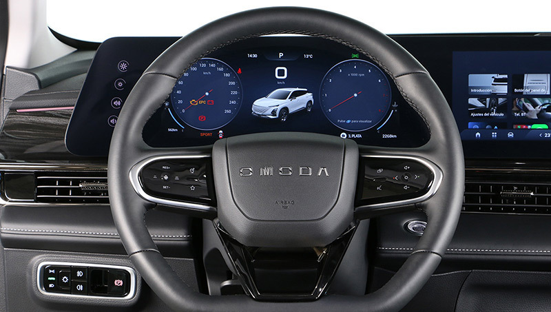 En la versiones vendidas a partir de la mencionada fecha, las fase 2, Omoda cambia el salpicadero por el de la versión eléctrica, que entre otros elementos más o menos llamativos desde el punto del vista del diseño, tiene otras pantallas. Son de mayor tamaño que las del fase 1 (de 12,3 pulgadas; imagen) y dan un rendimiento claramente superior: los menús son más sencillos de comprender y están totalmente traducidos al español, funcionan con más rapidez y admiten más personalización. El sistema de reconocimiento de comandos vocales, en cambio, sigue siendo muy mejorable (sus opciones son muy limitadas).